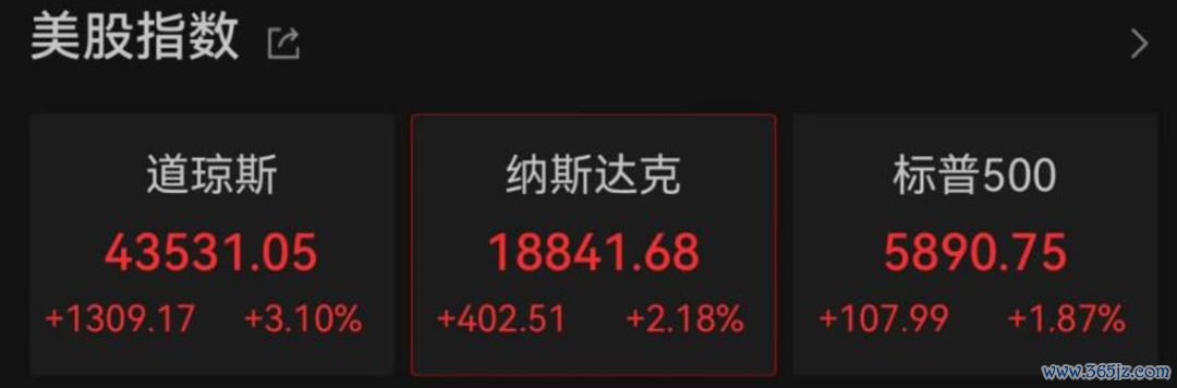 北京时间6日晚间,美股市场三大指数全线大涨。